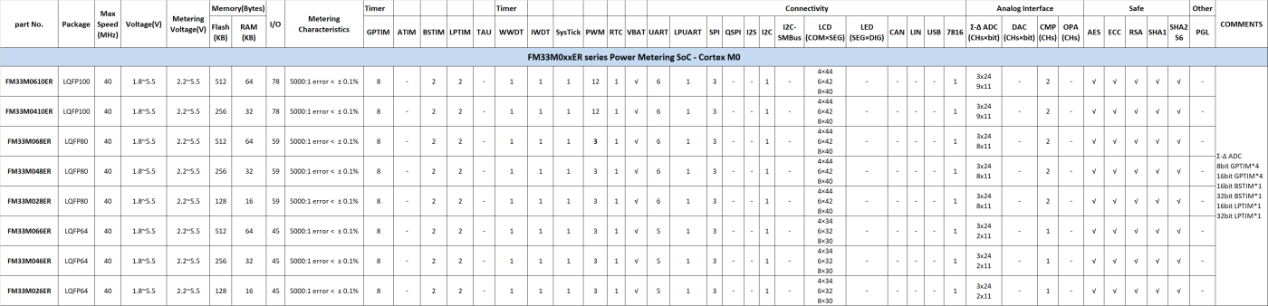 | FM33G0xx | 產品說明書下載 | 1.8V~5.5V | -40℃~85℃ | Up to 256K | Up to 24K | 6 | 3 | 1 |
